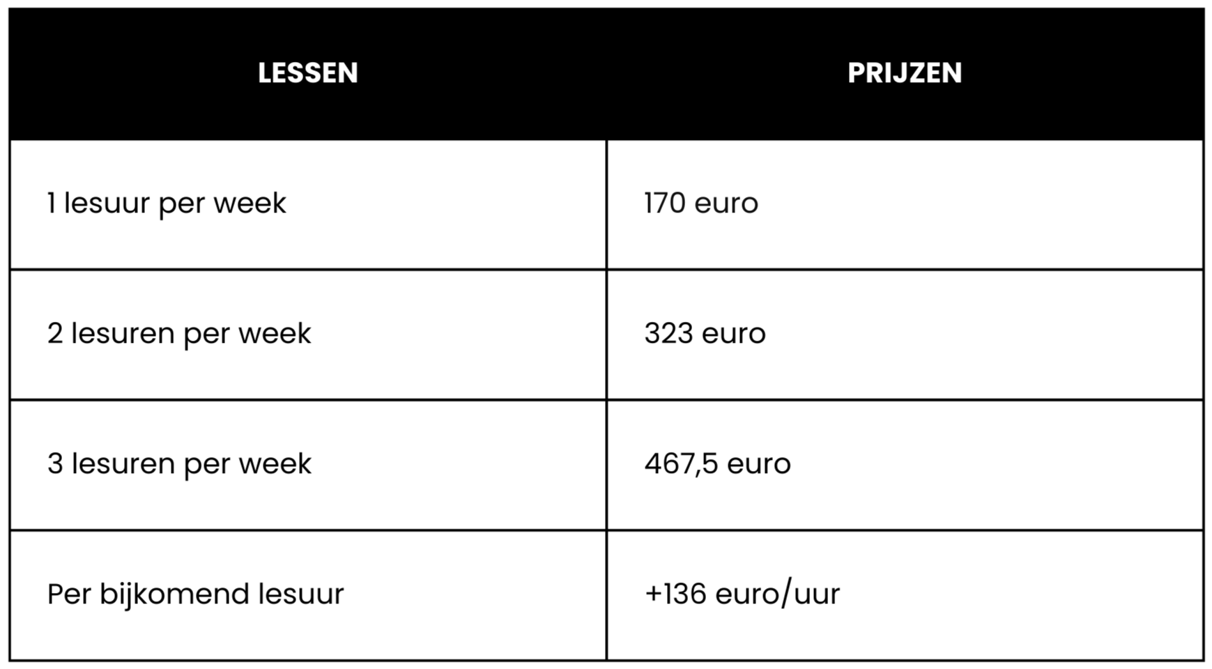 Showteam hoort apart betaald te worden. Deze les telt niet mee als een normaal lesuur en staat dus los van bovenstaande tabel.